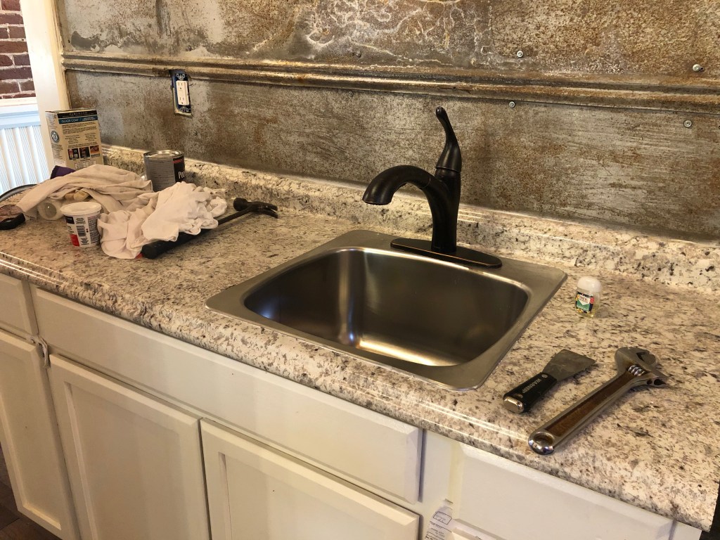 Happy Thursday. Wow, it’s already July! While we’ve had two in-progress sinks at the Pope House, it’s been a bit smelly. That’s because the helpful P traps are not in yet, so the little water barrier that keeps sewer gas in the sewer isn’t there. It’s not horrible, but we have incentive to finish the break room and office bathroom sinks sooner rather than later.