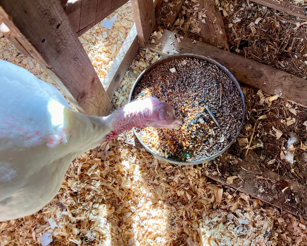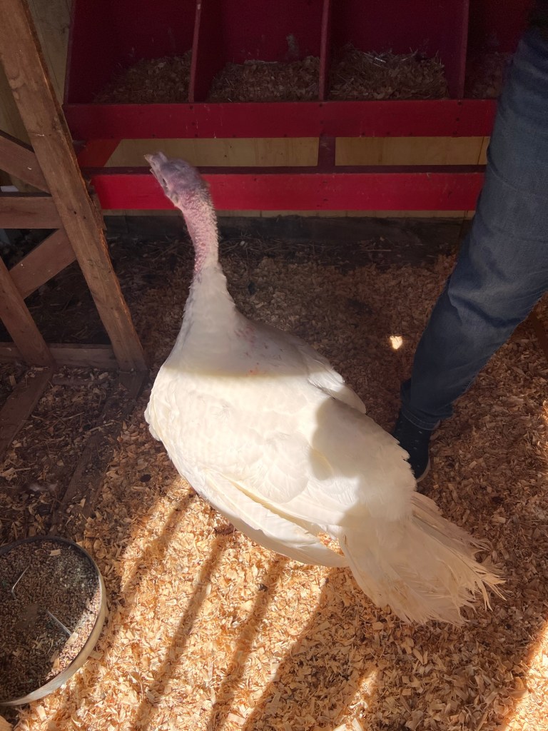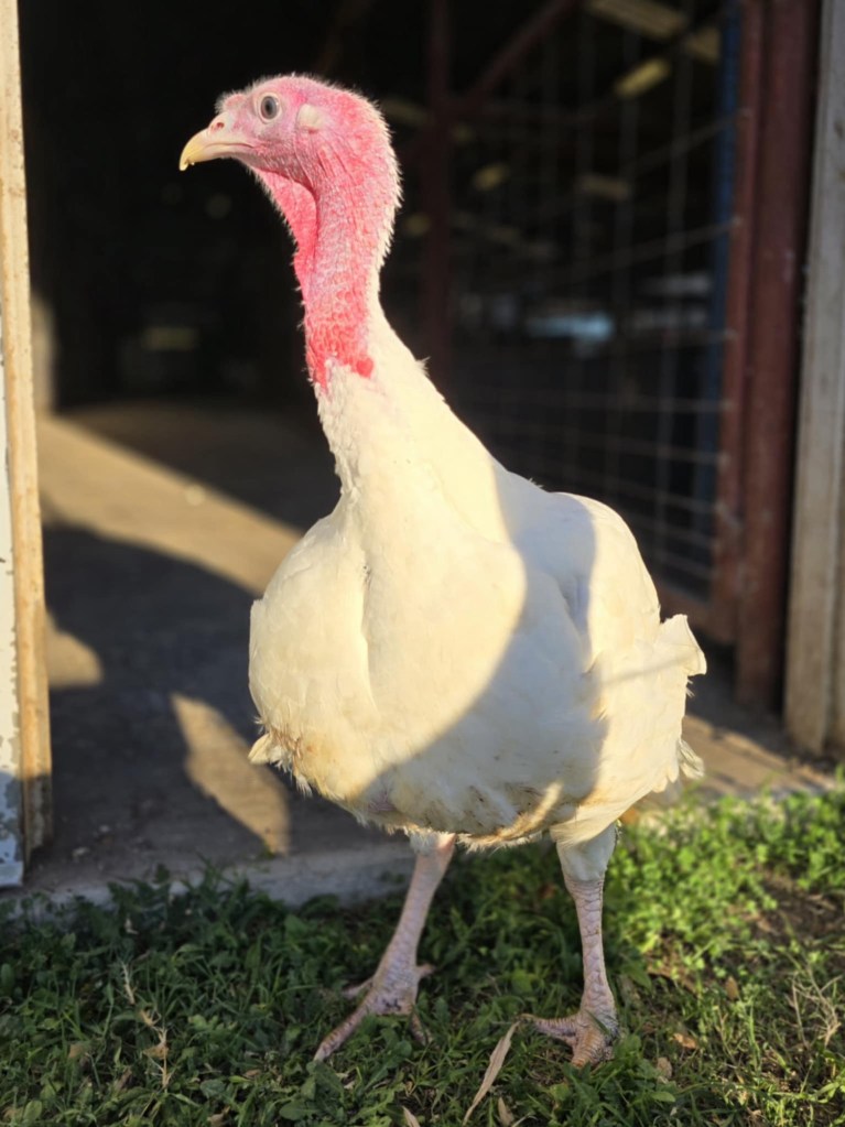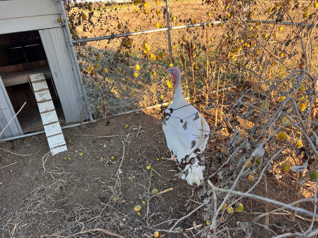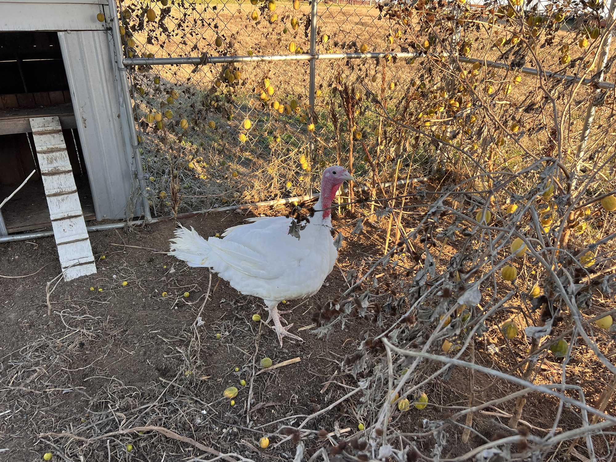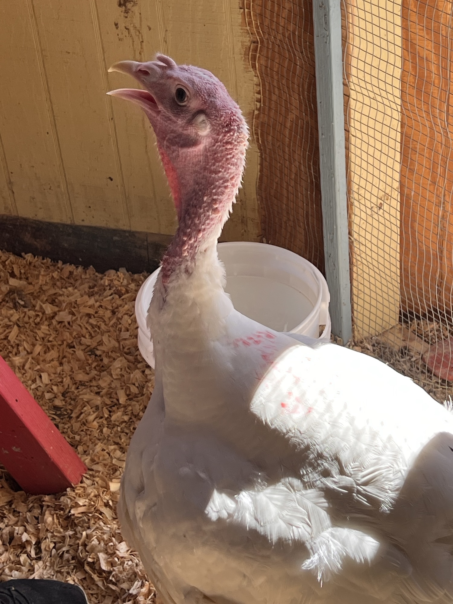 First, I have an admission. As much as I like birds, I rarely get attached to them. I was fond of Bertie Lee, my old chicken, but I try not to get too attached after living through a couple of grisly chicken massacres. Nonetheless, I find myself feeling as much love for Connie Gobbler, my sweet turkey lady. I love her happy greeting chirps and the way she stretches her turkey neck out to be rubbed. She’s just so friendly and funny. It’s hard not to love her.