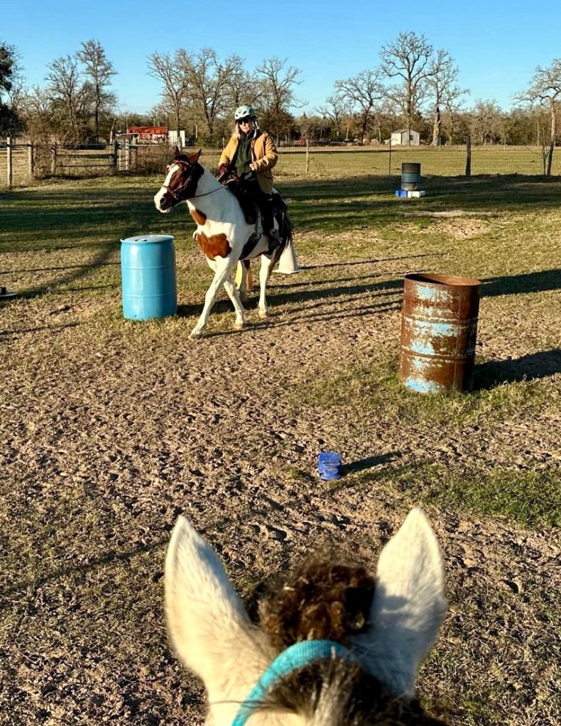 Today I thought to myself that she reminded me of someone. Hmm. Oh yes, Fiona. I’ve lost count of the number of times I’ve been in the horse pens or out in the pasture doing a chore or working with a horse when I move slightly and realize Fiona’s nose is next to my leg. She’s completely silent and just shadows me until I pay her some attention.