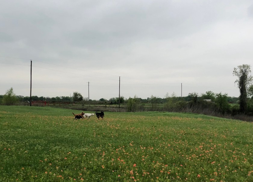It’s been raining a lot for the past month or so. Here in the middle of Texas, we hope that happens every spring, so the tanks (ponds) fill up and the creeks flow for a while. The trees get their yearly long drink of water, and everything gets ready for two or three months of no rain come summer.