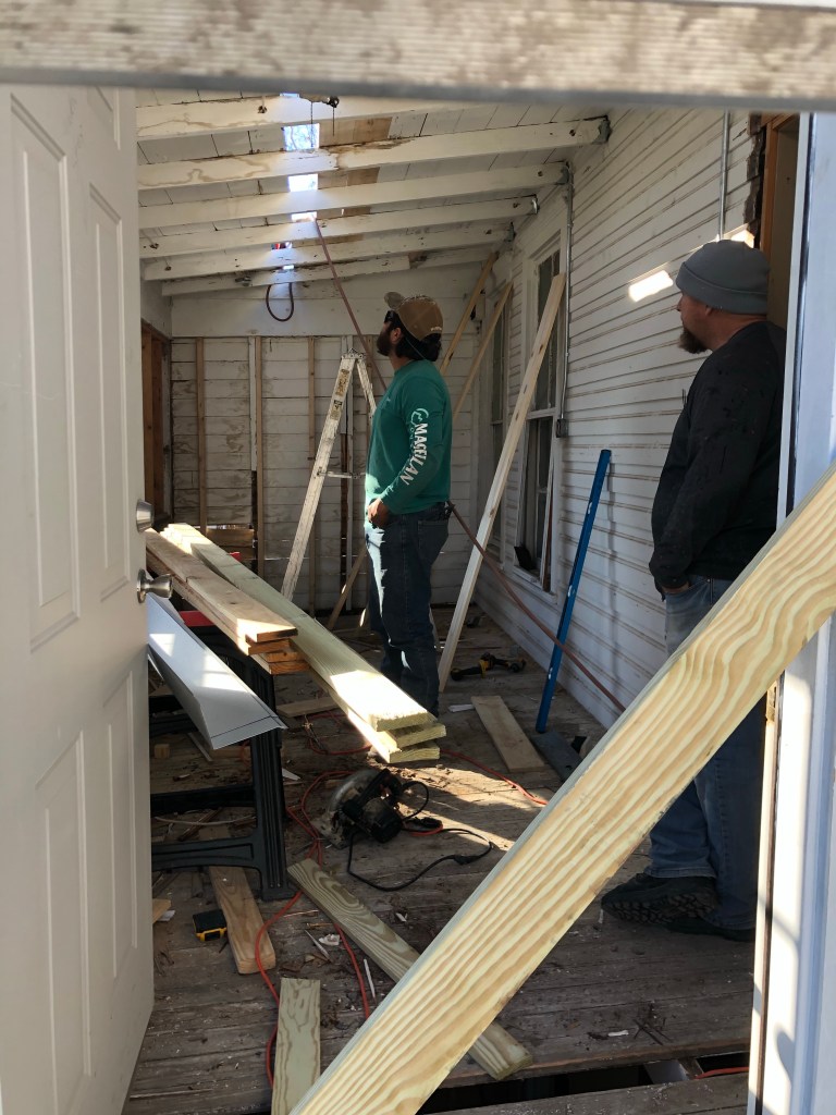 Easton’s like me. Not a big fan of being on the roof. He and Randy can help from the sturdy floor of the sunroom.