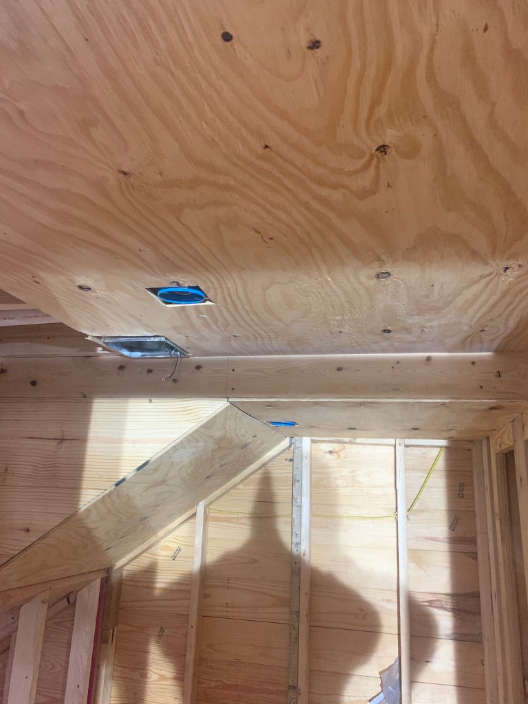 That’s some dust-free wood! Plus, I can see where the light fixture and vent will be! Photo by Chris