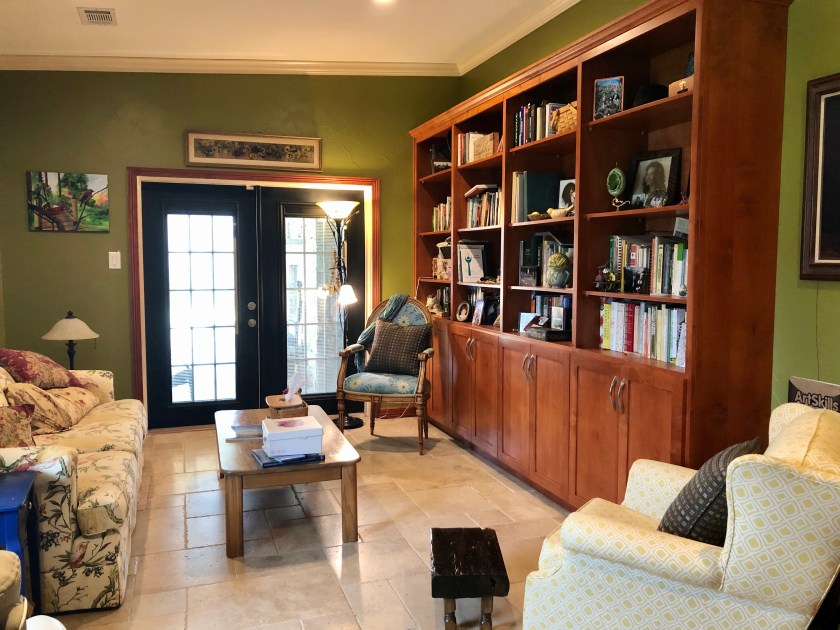 What I realized soon after starting to think about sanctuaries is that I truly crave them. I make myself a sanctuary wherever I go. In Austin, it’s my bedroom, where again, I have things I care about and a cozy place to sit and read or knit. I’ve turned my office at the Hermit Haus into a sanctuary with all my colors and all my nature stuff. Even in the horrible “open office” thing at work in Austin, I’ve tried to create a place of calm.