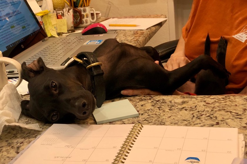 Apache loves when Trixie comes and he gets to get in those weird positions and then feels better. I think he thinks they’re playing.