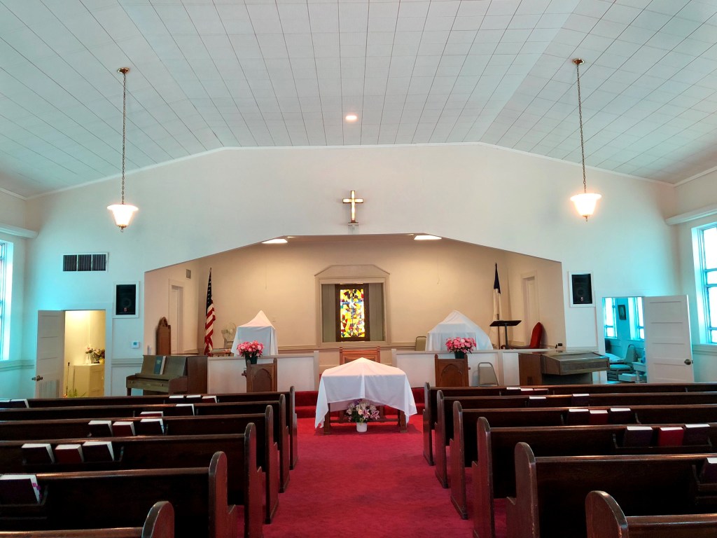 This is when it was in use as a church. They took that nice lighted thing in the back.