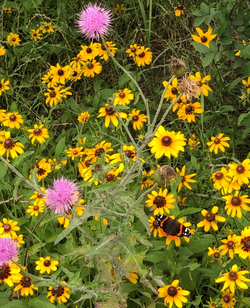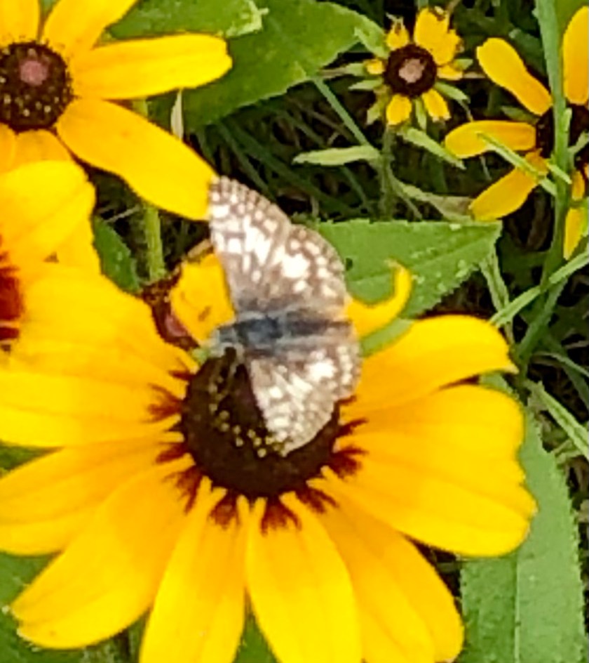 And then there were butterflies! Yes, I’ve seen common buckeyes before, along with the perky little fiery skippers and the red admirals, but the pearl crescent butterfly was new to me, and wow, it’s pretty. The little white checkered skipper looks like lace from a distance, too. In addition to the ones I photographed, I also saw orange sulphurs and gray hairstreaks. That’s a lot of butterflies!
