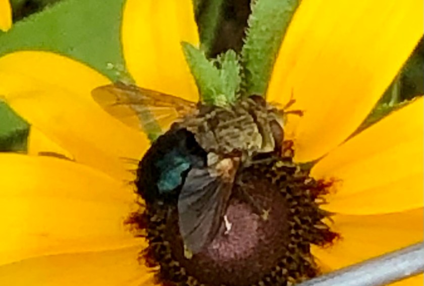 I’ll leave you with what I saw when I came downstairs for lunch. This is one big fly. It’s not as big as a horsefly, but it’s big. Eric in our Master Naturalist class says it’s an Archytas. iNaturalist agreed. I just think it looks really, really, prickly and like it would bite. One thing I dislike is fly bites. Shudder.