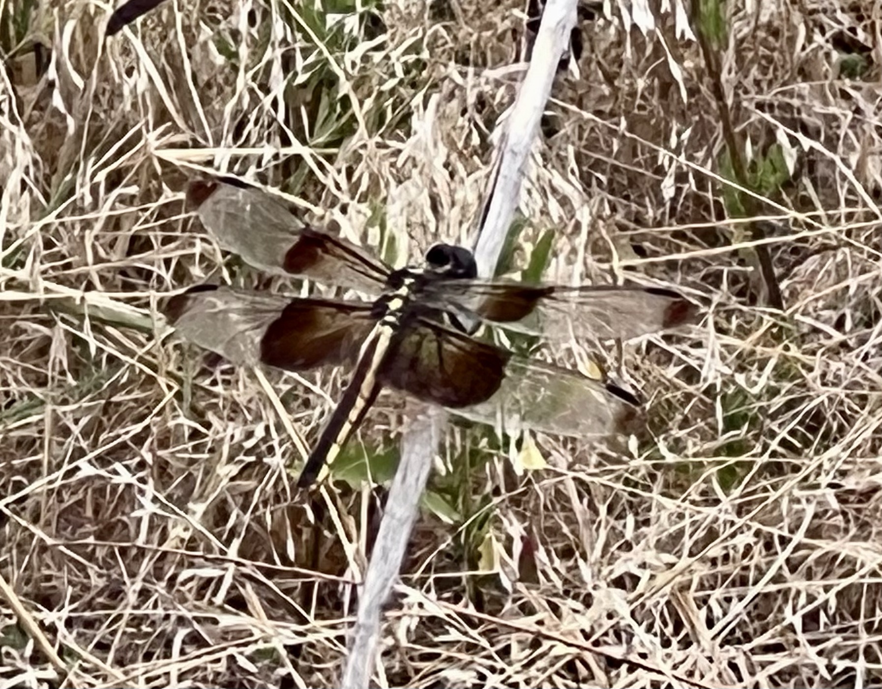 I also saw a damselfly and a Halloween pennant, but they were too busy to stop. This one was very pretty, though it didn’t photograph well.
