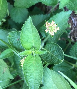 Over to the left, something moved on a common lantana flower (which Linda Jo, my iNaturalist identifier, called “not one of the good ones”). There was a tiny, tiny fly. It has stripes that make it look like a bee or wasp, but it’s one of the little flies that lives on nectar from flowers, a calligrapher fly. I guess it does look like it has writing on it!