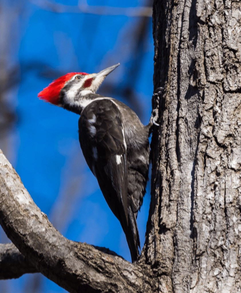 While I was there, I heard a loud bird sound, then something big flew by. I was enchanted, and I confirmed my hunch when I heard a hammering sound. It then flew by again, with a flash of black, white and red. It was the biggest pileated woodpecker I ever saw.
