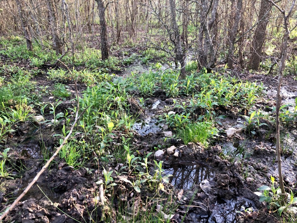 It always smells good in the damp woods (even with the cow poop scattered around). It’s especially musty and lovely by the seep, the springy area in the woods that never dried up at all last year. I crouched beside it a long time, listening to birds and watching them fly around.