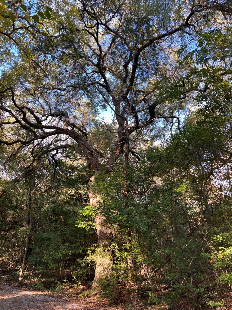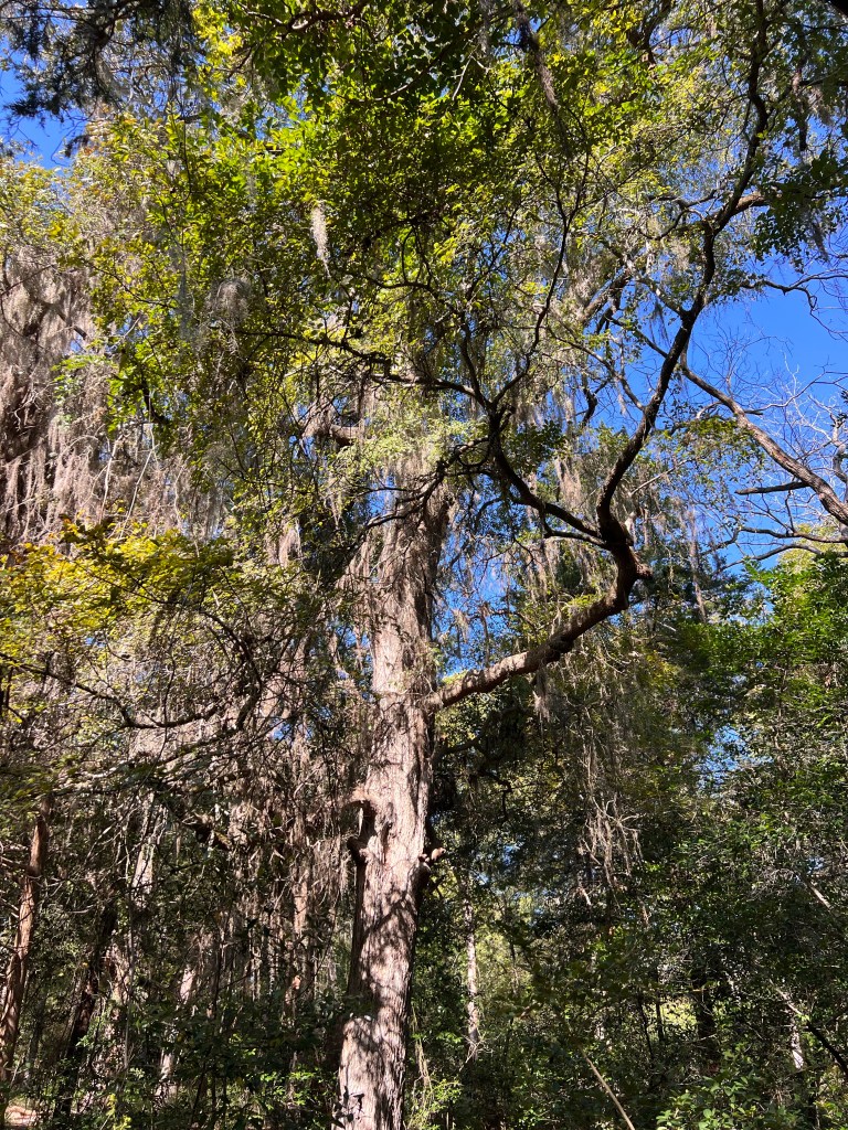 Leaving was made much easier when I realized I hadn’t been on the path that is next to the church. I guess I didn’t realize it went through. Ah, but it does, following a ditch or canal all the way to the next main road. There are cypress trees and many other hardwoods, like sweet gum and sand oak.