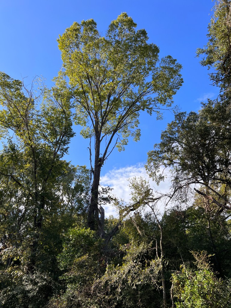 Chinaberry)not native)ElmPine in distanceThe hickories have huge leavesHickory nutTrees, lots of them