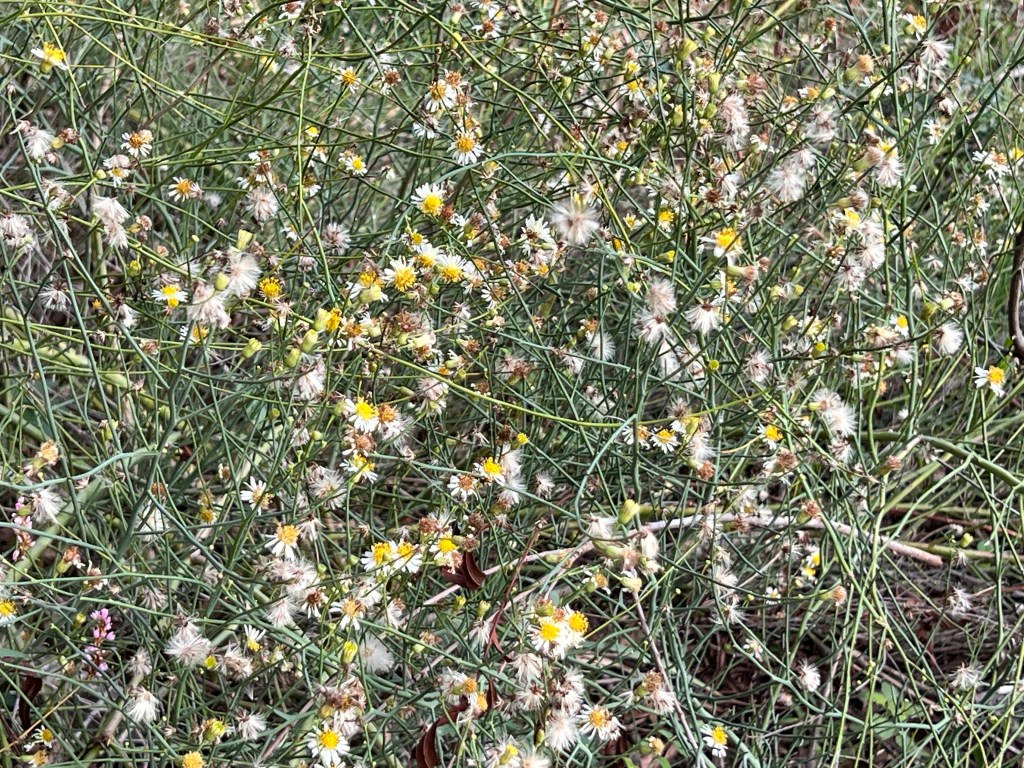 Partridge peaBlue water leaf SmartweedIron weedPurple false foxgloveTall thistleLindley’s butterfly bushI was sad to learn it’s not nativeElephant’s feet. New one to me. CamphorweedWing-leaf primrose willowSumacTrailing fuzzy beanLespedeza